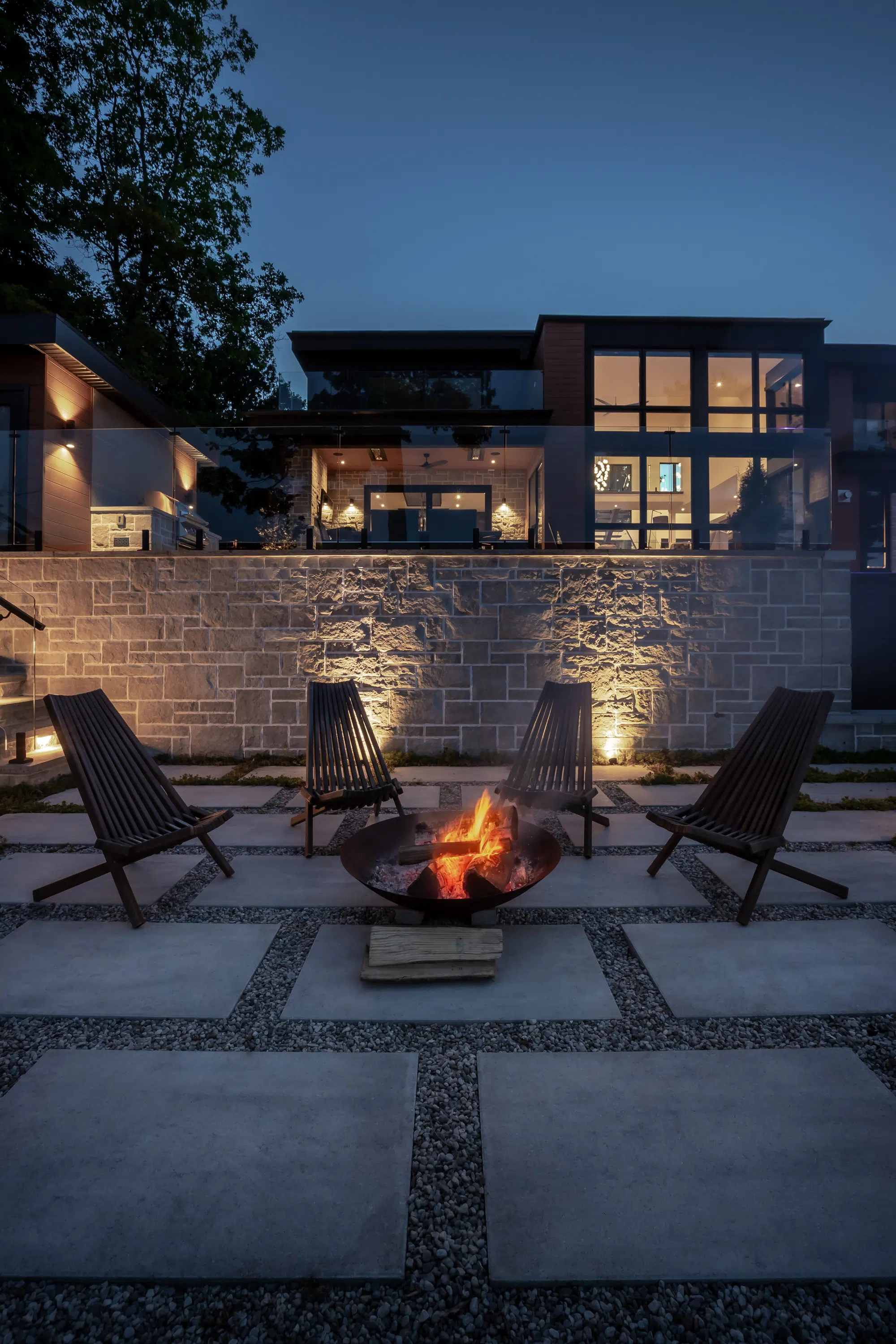 This modern escarpment landscape sits boldly on the edge of the ravine, framing sweeping views of the city. Its infinity-edge pool hovers right at the cliff, creating a seamless connection between the home and the horizon.